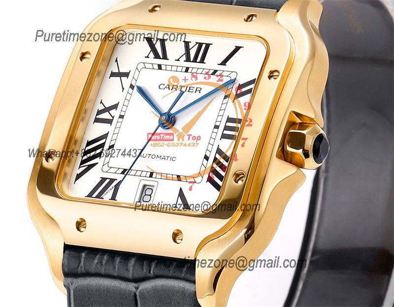 Home Cartier Santos de Cartier Santos WSSA0047 Large Model 39.8mm M9015 Automatic Mens Watch Best Edition THBF YG White Dial Leather CHS