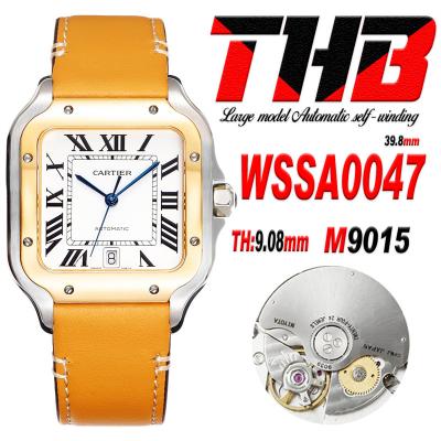 Santos WSSA0047 Large Model 39.8mm M9015 Automatic Mens Watch Best Edition THBF YG White Dial Leather CHS