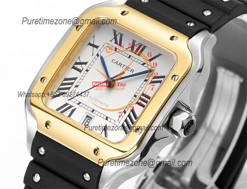 Home Cartier Santos de Cartier Santos WSSA0047 Large Model 39.8mm M9015 Automatic Mens Watch Best Edition THBF YG White Dial Rubber CHS