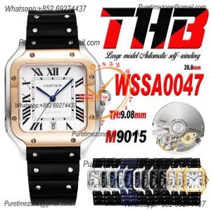 Santos WSSA0047 Large Model 39.8mm M9015 Automatic Mens Watch Best Edition THBF YG White Dial Rubber CHS