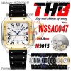 Santos WSSA0039 M9015 Automatic Mens Watch Best Edition BVF Large 39.8mm All Black Steel Dial Leather Strap