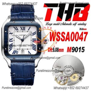Santos WSSA0047 Large Model 39.8mm M9015 Automatic Mens Watch Best Edition THBF PVD Blue White Dial Leather CHS $576.00 $480.00