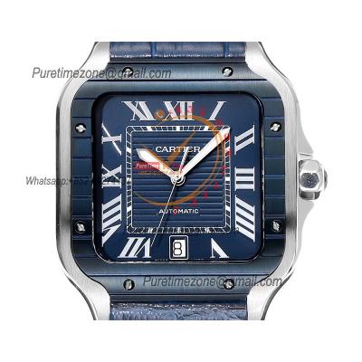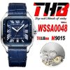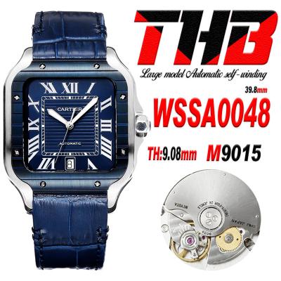 Santos WSSA0048 Large Model 39.8mm M9015 Automatic Mens Watch Best Edition THBF PVD All Blue Dial Leather CHS