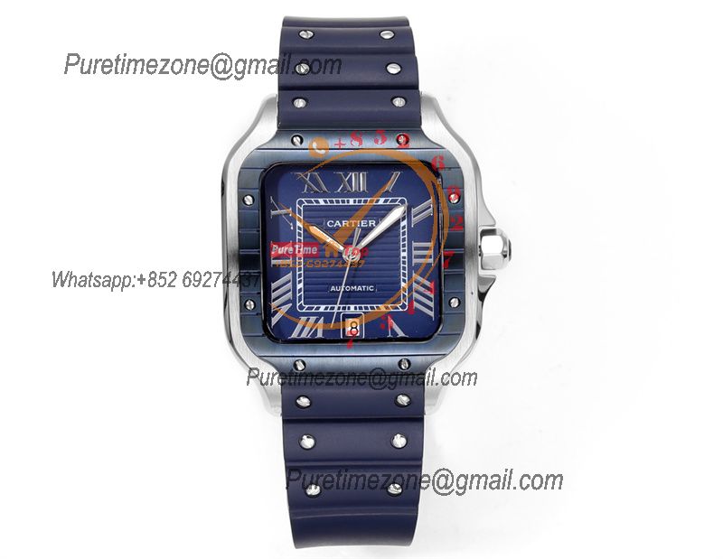 Santos WSSA0048 Large Model 39.8mm M9015 Automatic Mens Watch Best Edition THBF PVD Blue Dial Rubber CHS $612.00 $510.00