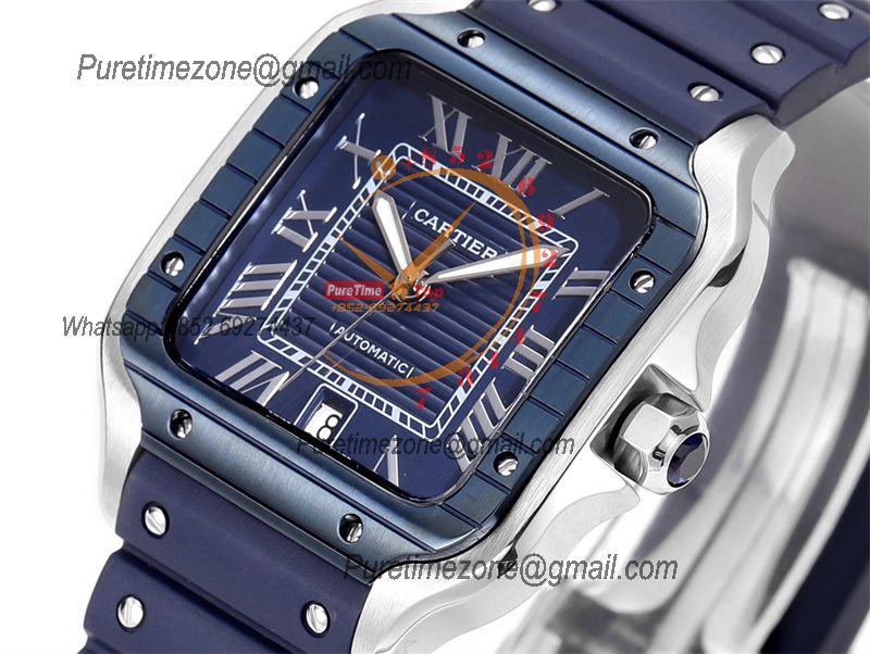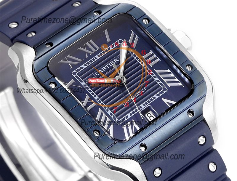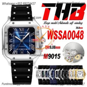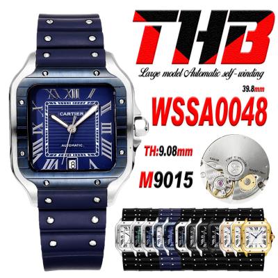 Santos WSSA0048 Large Model 39.8mm M9015 Automatic Mens Watch Best Edition THBF SS Blue Dial Rubber CHS
