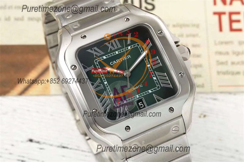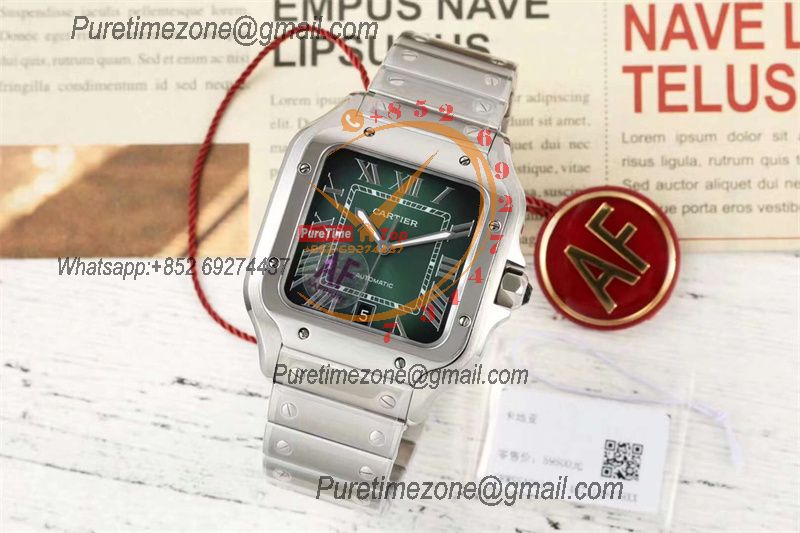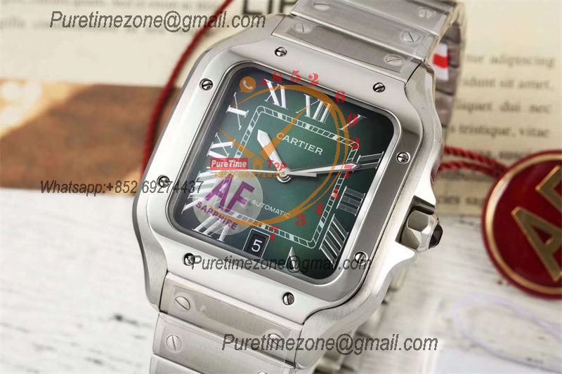 Santos WSSA0062 M9015 Automatic Mens Watch Best Edition AF 40mm Green Roman Dial SS Bracelet