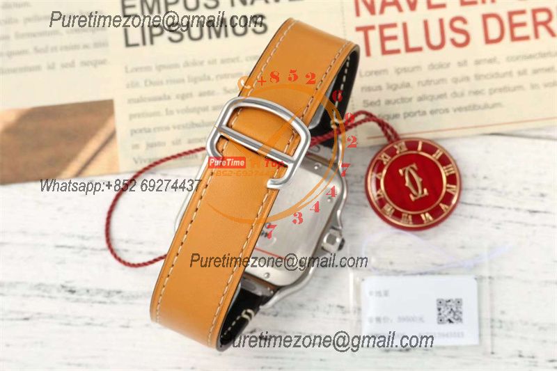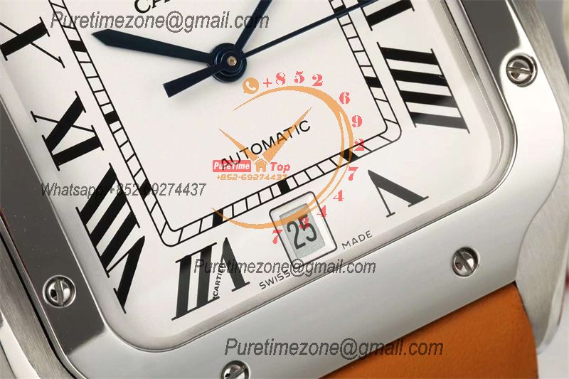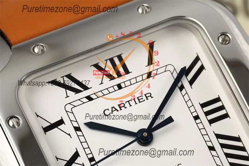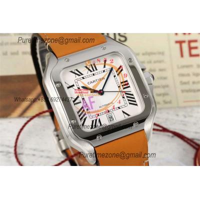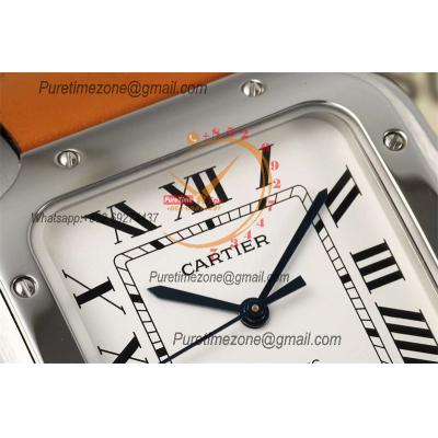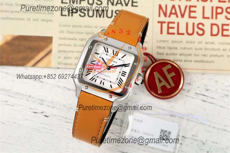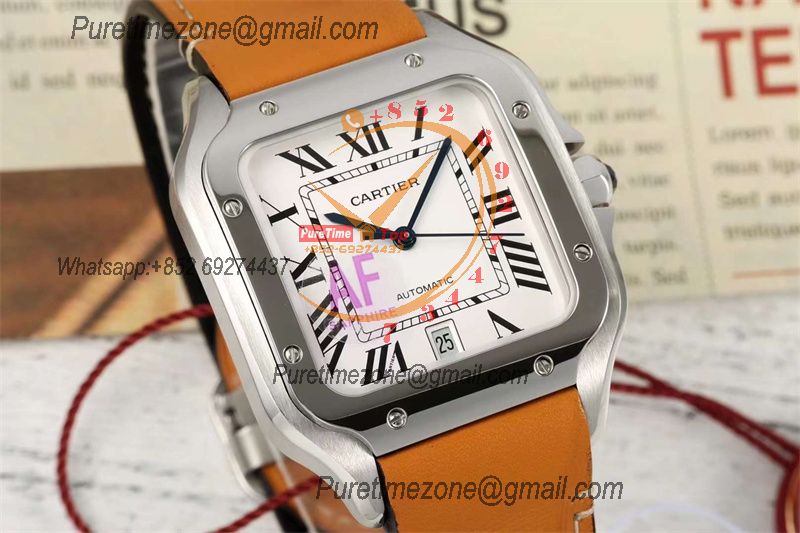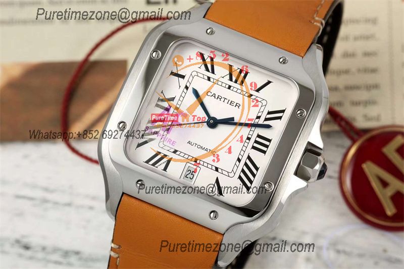 Santos WSSA0079 M9015 Automatic Mens Watch Best Edition AF 40mm White Roman Dial Brown Leather Strap