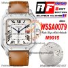 Santos WGSA0018 M9015 Automatic Mens Watch Best Edition AF 40mm White Roman Dial Black Leather Strap
