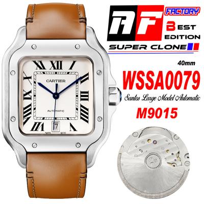 Home Cartier Santos de Cartier Santos WSSA0079 M9015 Automatic Mens Watch Best Edition AF 40mm White Roman Dial Brown Leather Strap