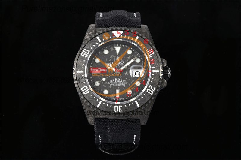 Sea Dweller 43mm Carbon ATOM A3235 Automatic Mens Watch Best Edition DIWF Black Orange Dial Nylon Strap