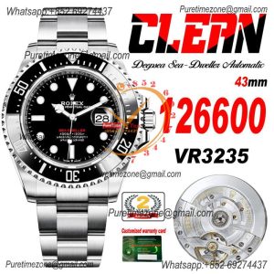 Sea-Dweller 126600 Automatic Mens Watch Super Clone VSF 43 Ceramic Bezel Black Dial 904L SS Bracelet VS3235