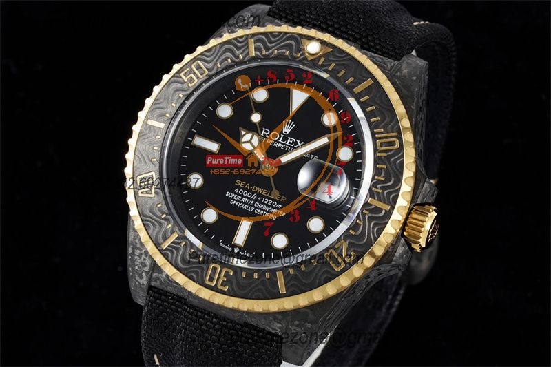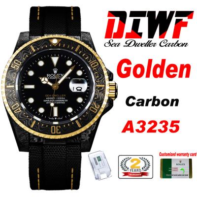 Sea Dweller 43mm Carbon Golden A3235 Automatic Mens Watch Best Edition DIWF YG Black Dial Nylon Strap