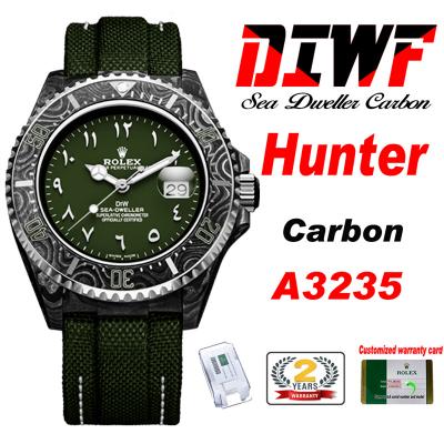 Sea Dweller 43mm Carbon Hunter A3235 Automatic Mens Watch Best Edition DIWF Green Arabic Dial Nylon Strap