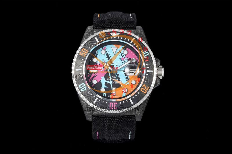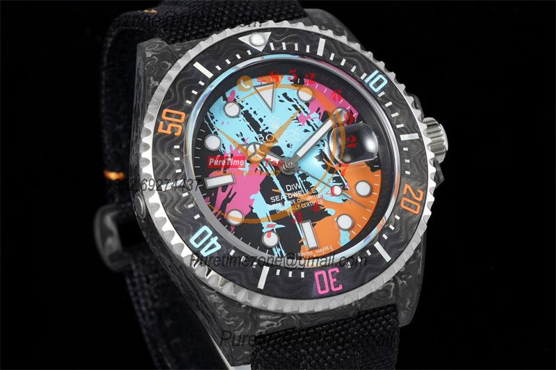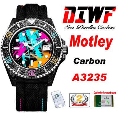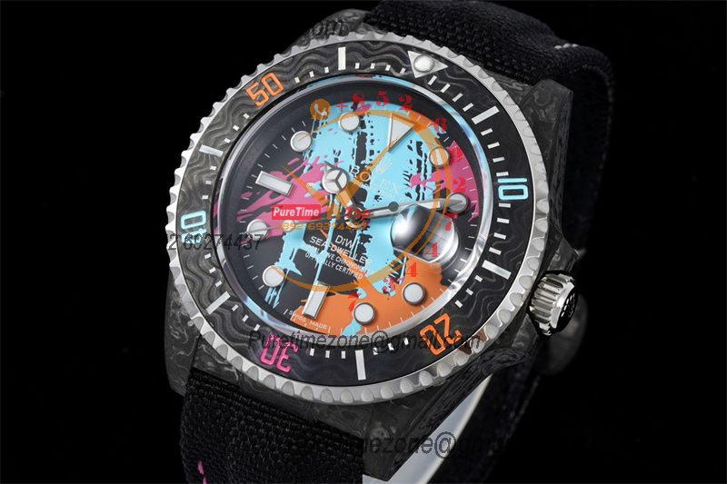 Sea Dweller 43mm Carbon Motley A3235 Automatic Mens Watch Best Edition DIWF Graffiti Dial Nylon Strap