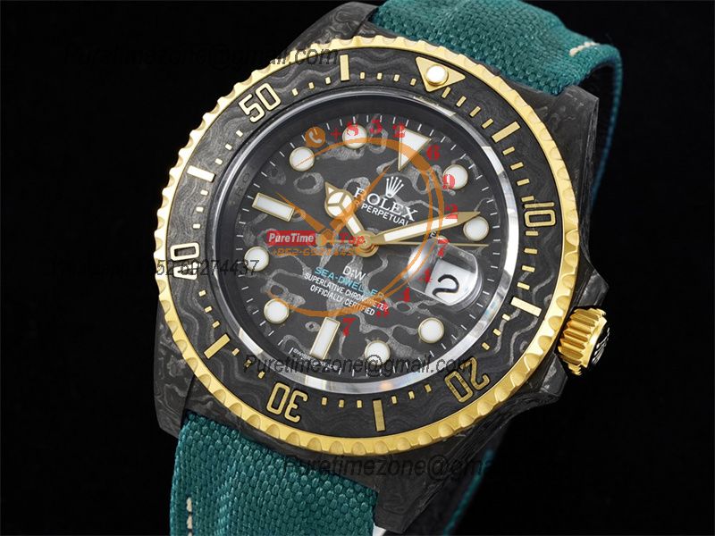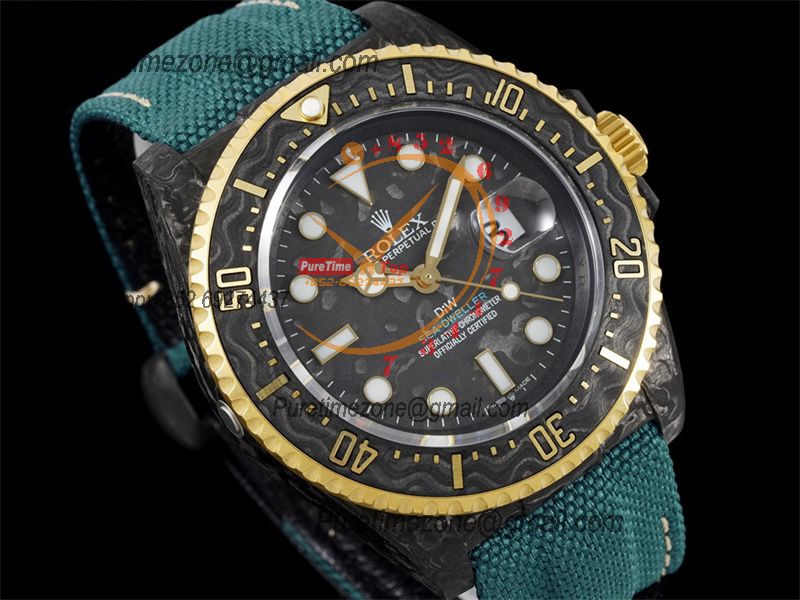 Sea Dweller 43mm Carbon Golden A3235 Automatic Mens Watch Best Edition DIWF YG Black Dial Nylon Strap
