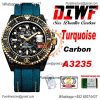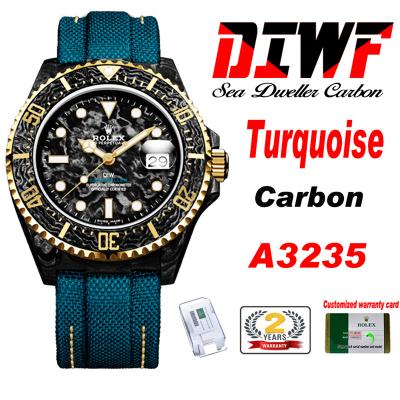 Sea Dweller 43mm Carbon Turquoise A3235 Automatic Mens Watch Best Edition DIWF Black Dial Green Nylon Strap