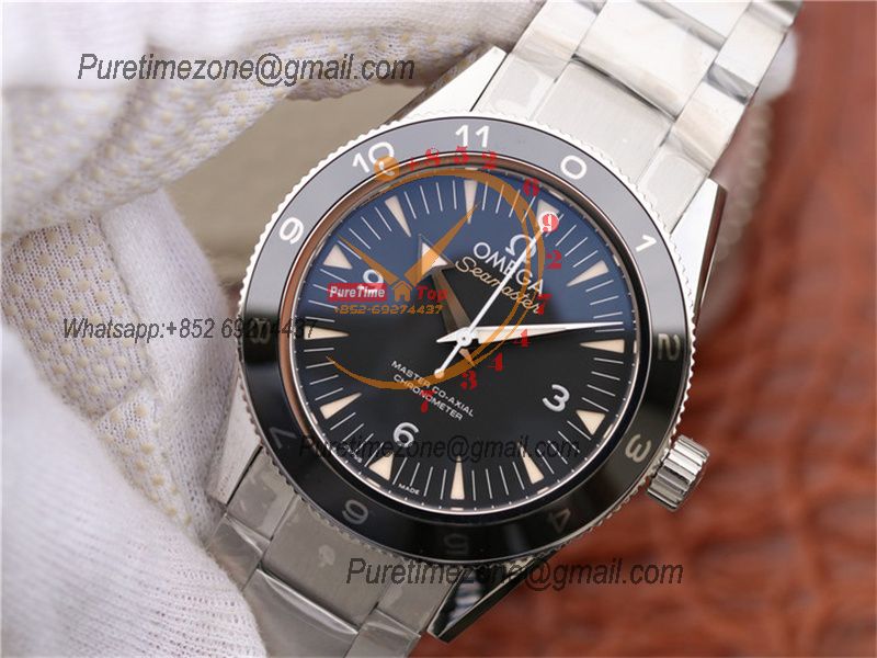 Seamaster 300M A9900 Automatic Chronograph Mens Watch Best Edition N1F 44mm Steel Black Dial SS Bracelet CHS