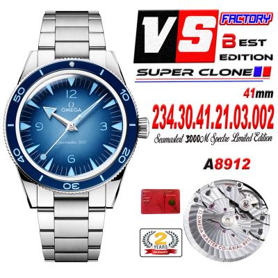 Home OMG Seamaster 300 Heritage A8912 Autoamtic Mens Watches VSF Best Ediiton Blue Dial SS Bracelet CHS 234.30.41.21.03.002