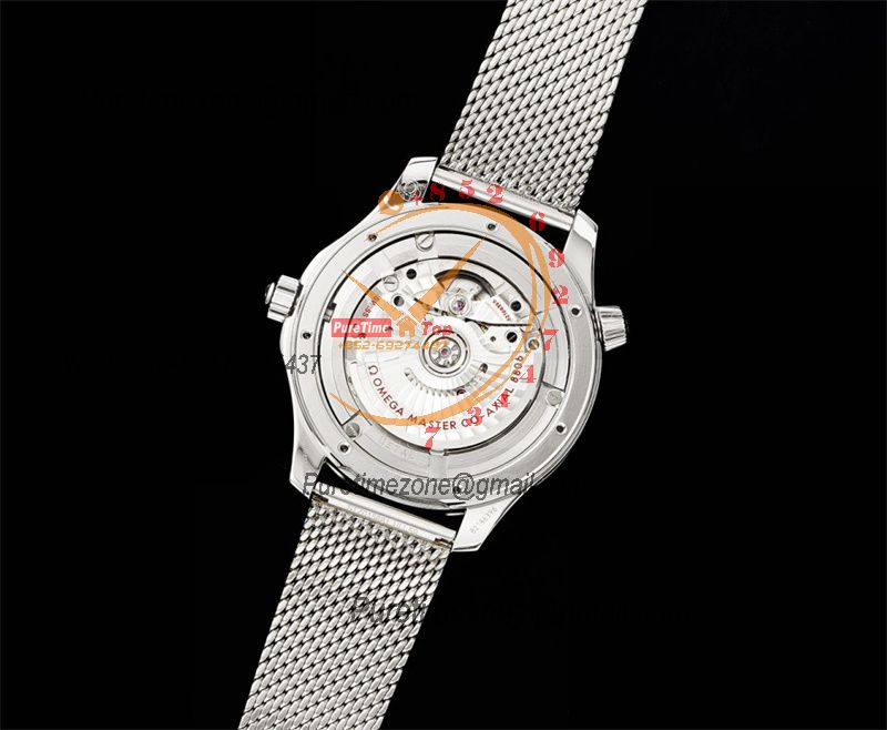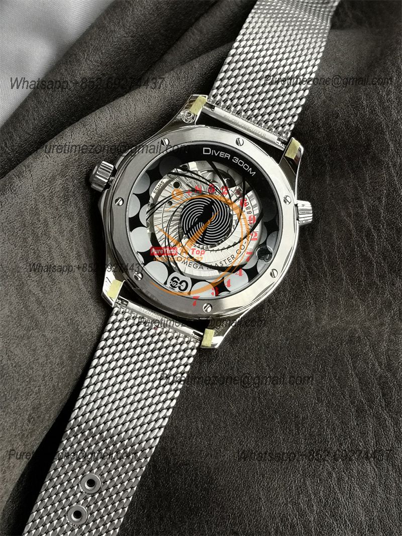 Home OMG Seamaster 300M 42mm James Bond 60th anniversary A8806 Autoamtic Mens Watches VSF Best Ediiton Blue Dial Mesh Bracelet