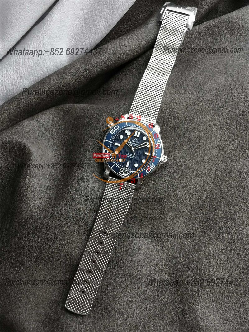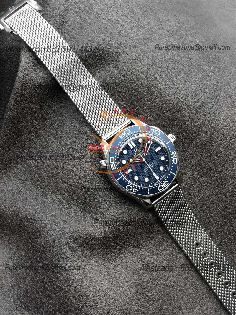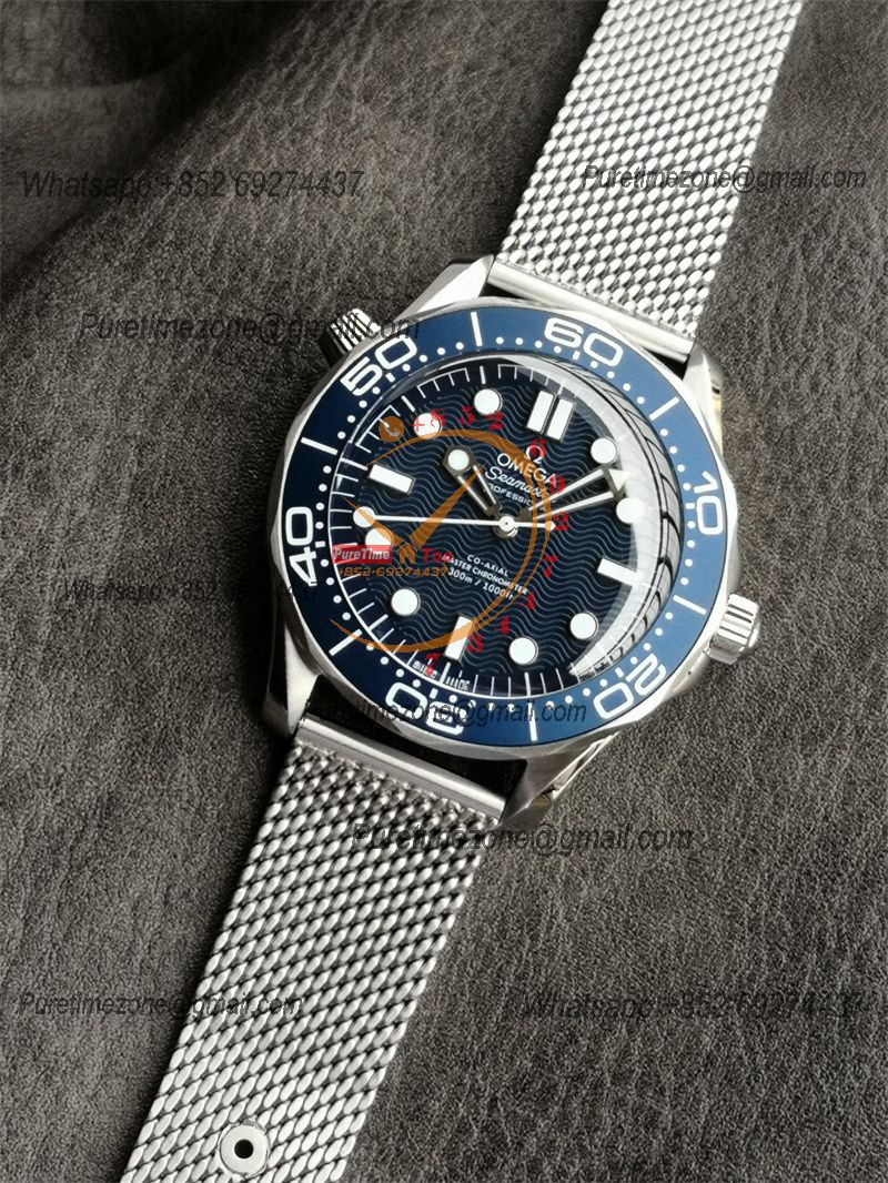 Seamaster 300M 42mm James Bond 60th anniversary A8806 Autoamtic Mens Watches VSF Best Ediiton Blue Dial Mesh Bracelet