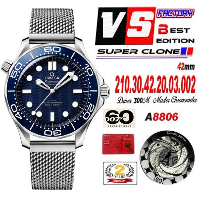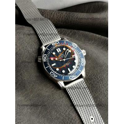 Seamaster 300M 42mm James Bond 60th anniversary A8806 Autoamtic Mens Watches VSF Best Ediiton Blue Dial Mesh Bracelet