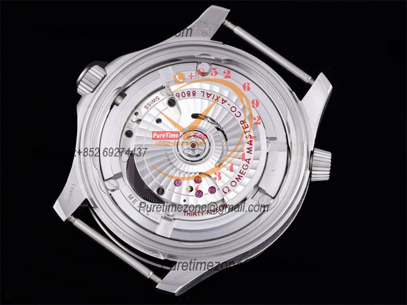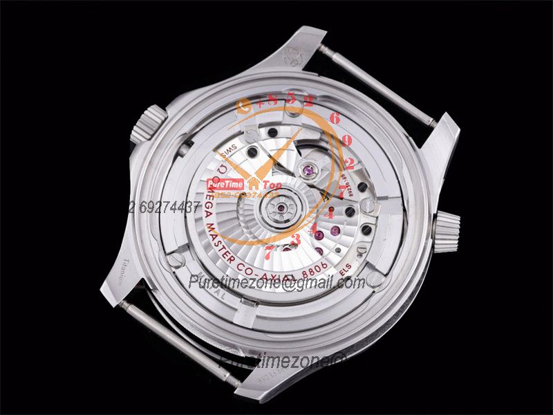 Movement:Asian 2824 automatic movement decorated to Omega 8806 movement, black balance wheel