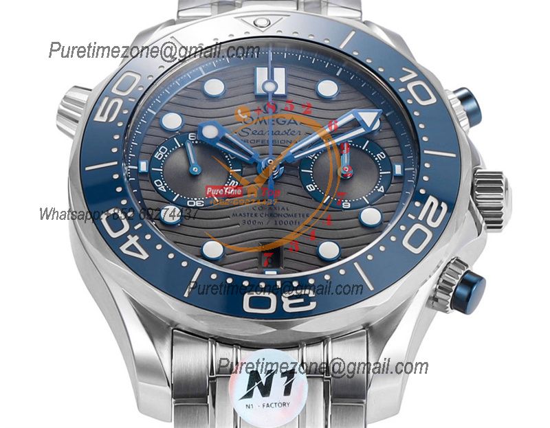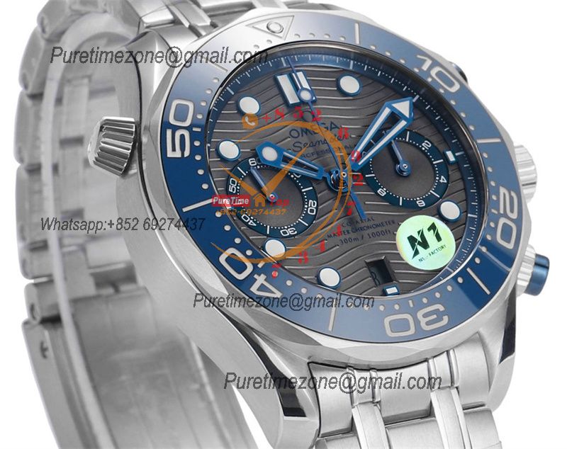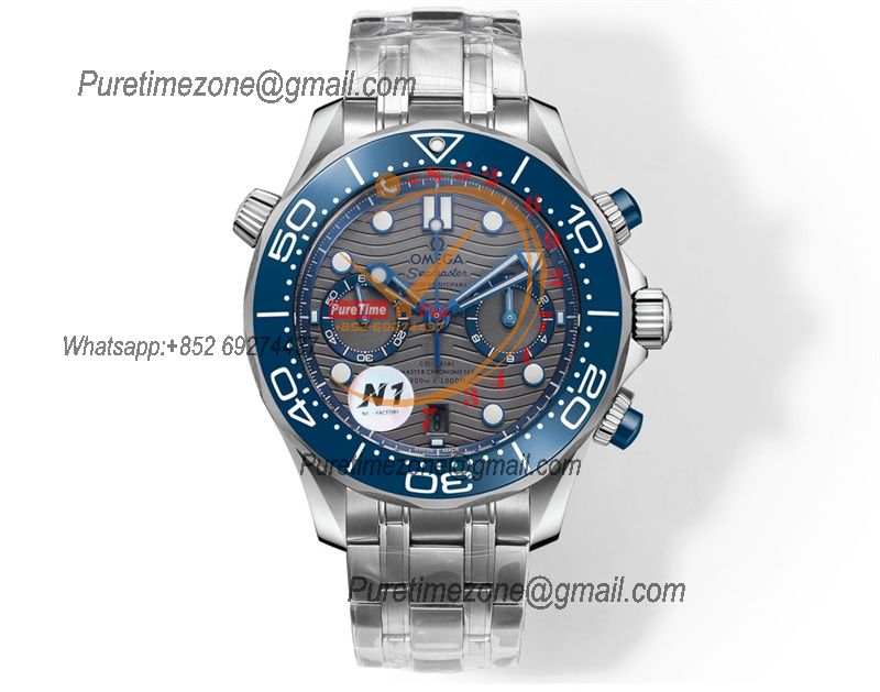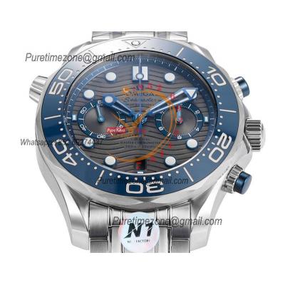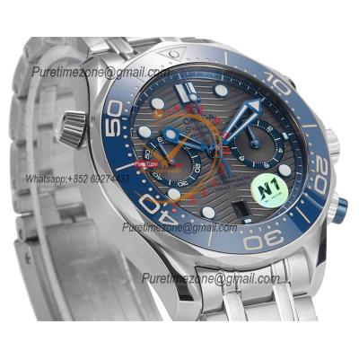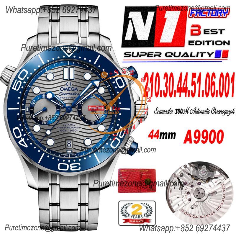 Seamaster 300M A9900 Automatic Chronograph Mens Watch Best Edition N1F 44mm Blue Gray Dial SS Bracelet CHS