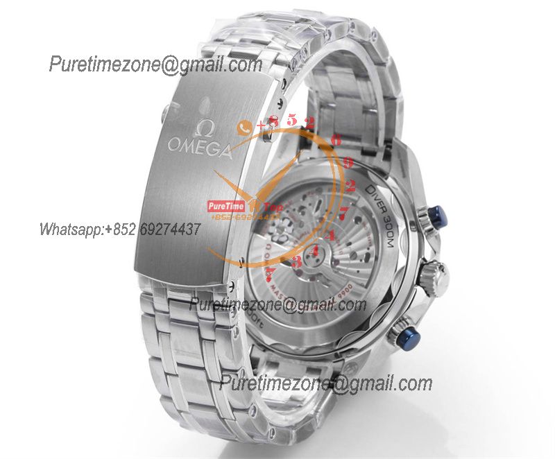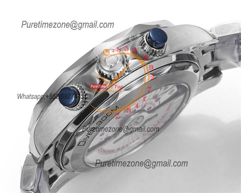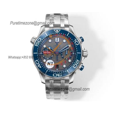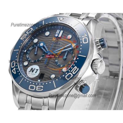 Home OMG Seamaster 300M A9900 Automatic Chronograph Mens Watch Best Edition N1F 44mm Blue Gray Dial SS Bracelet CHS