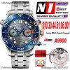Seamaster 300M A9900 Automatic Chronograph Mens Watch Best Edition N1F 44mm Steel Blue Dial SS Bracelet CHS