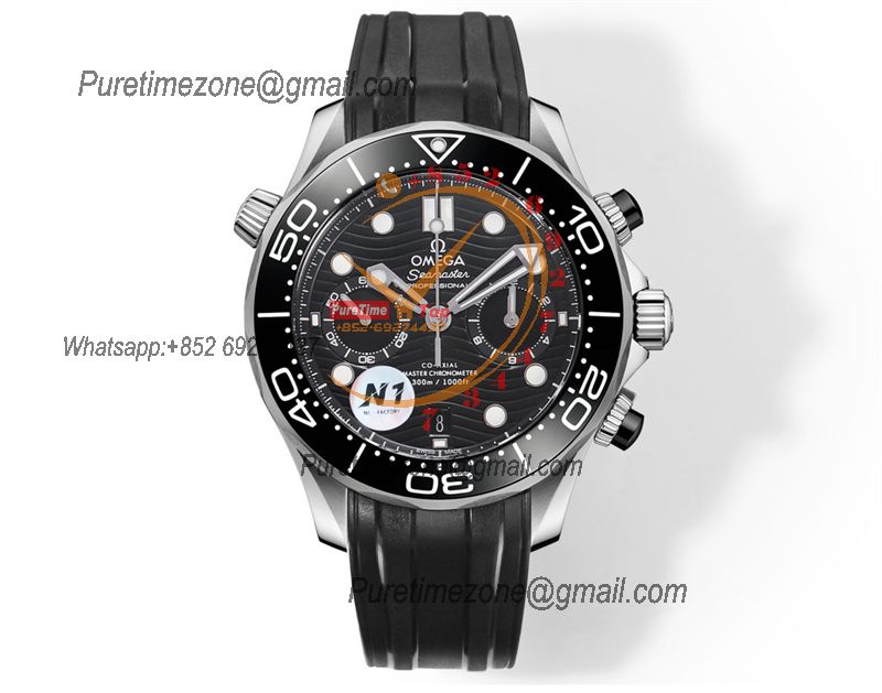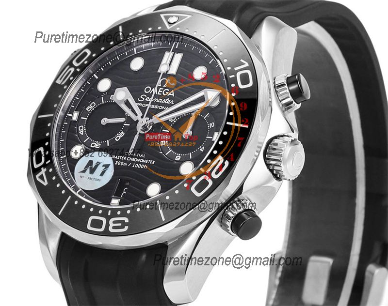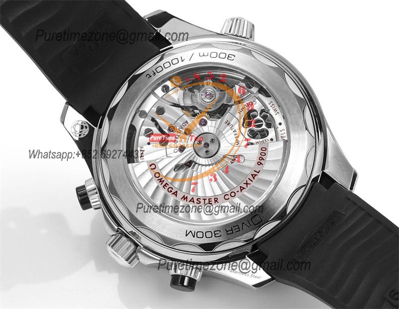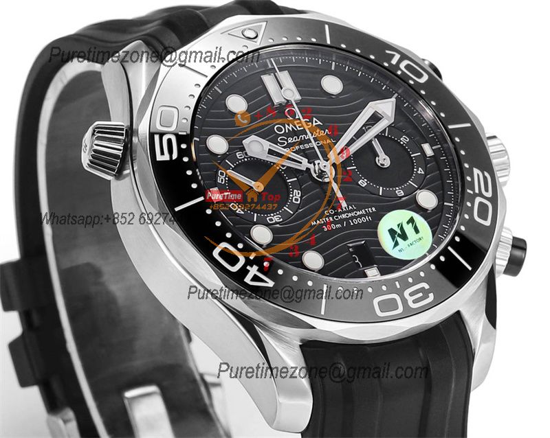 Home OMG Seamaster 300M A9900 Automatic Chronograph Mens Watch Best Edition N1F 44mm Steel Black Dial Rubber CHS