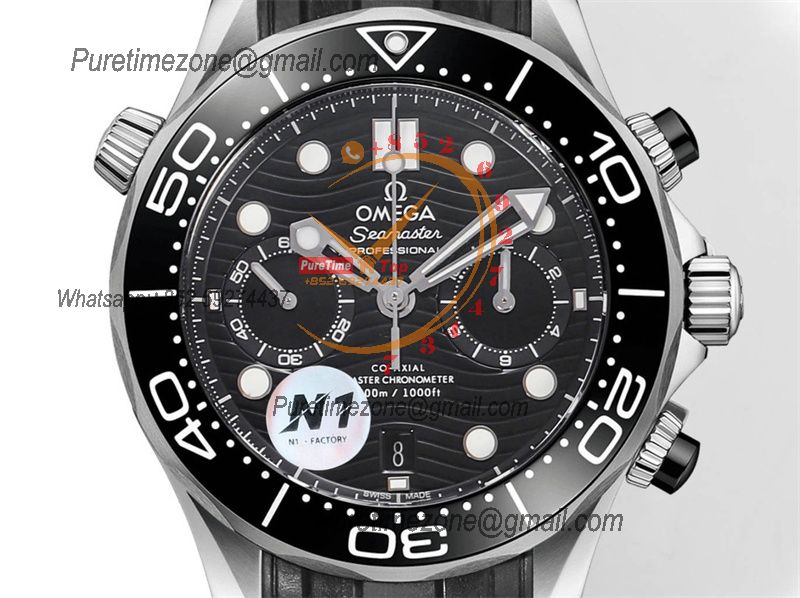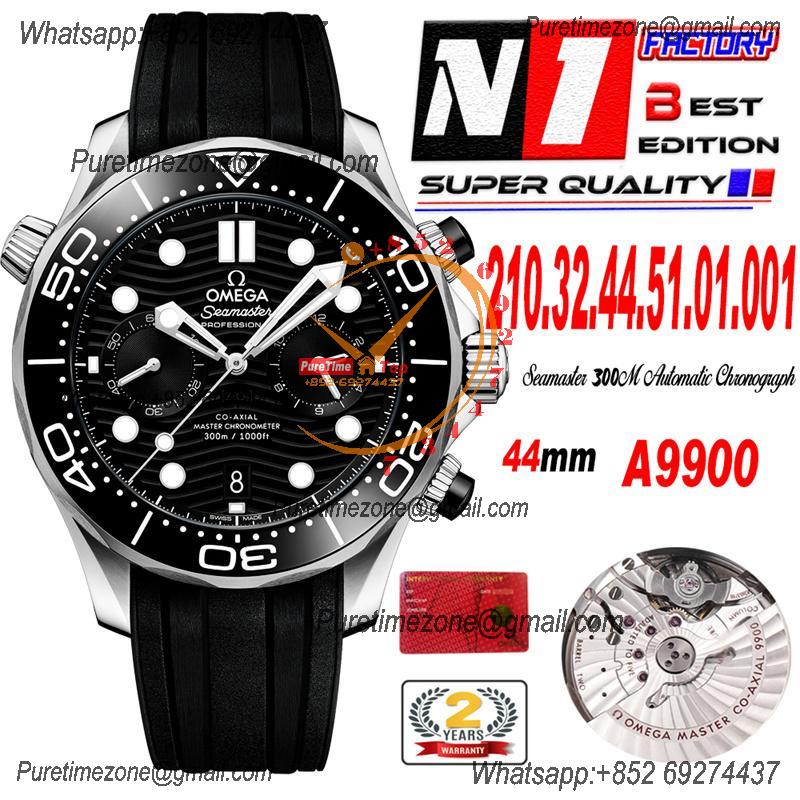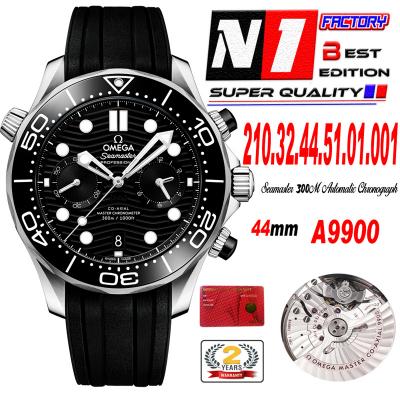 Seamaster 300M A9900 Automatic Chronograph Mens Watch Best Edition N1F 44mm Steel Black Dial Rubber CHS