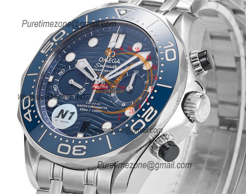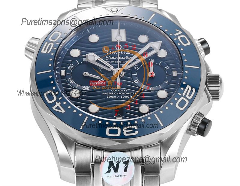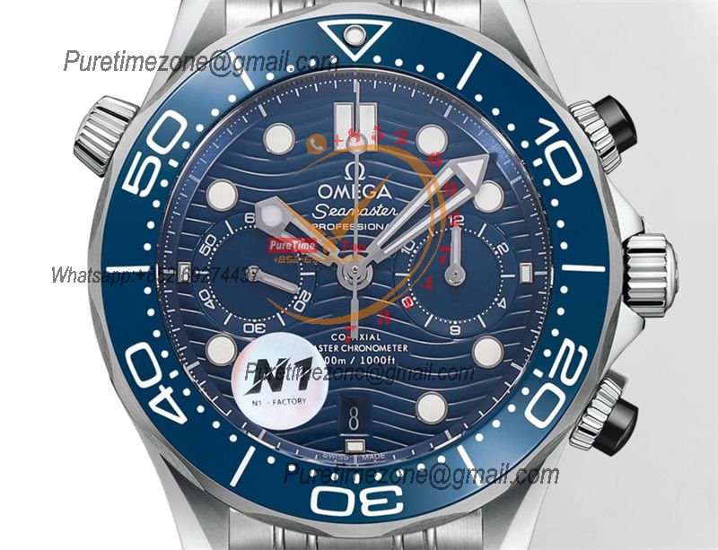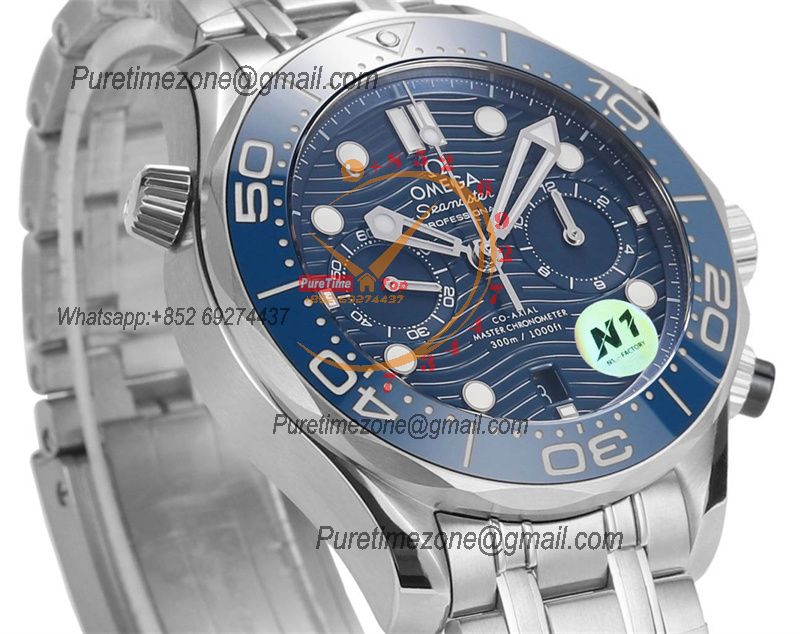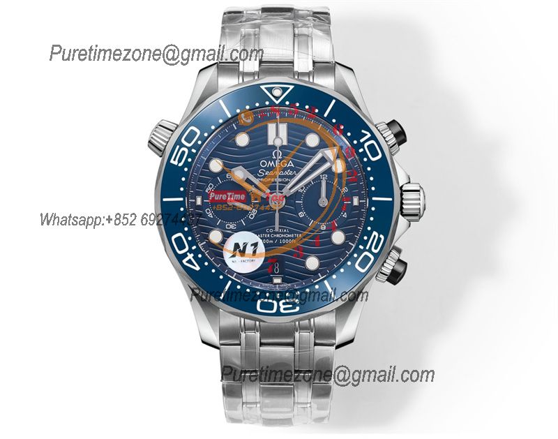 Seamaster 300M A9900 Automatic Chronograph Mens Watch Best Edition N1F 44mm Steel Blue Dial SS Bracelet CHS