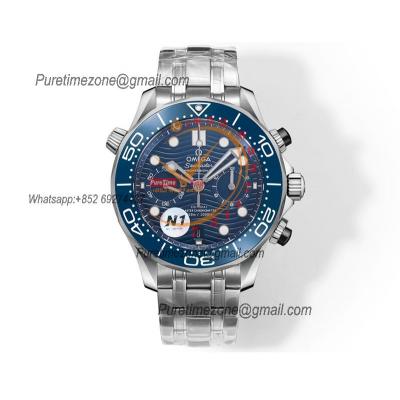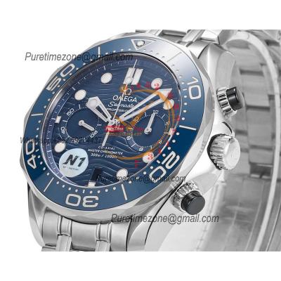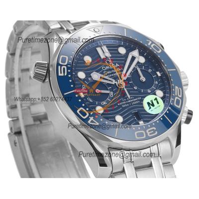 Home OMG Seamaster 300M A9900 Automatic Chronograph Mens Watch Best Edition N1F 44mm Steel Blue Dial SS Bracelet CHS