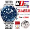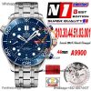 Seamaster 300M A9900 Automatic Chronograph Mens Watch Best Edition N1F 44mm Steel Blue Dial SS Bracelet CHS