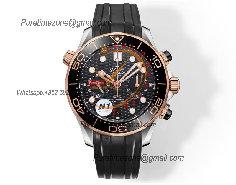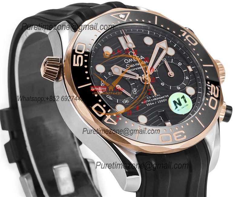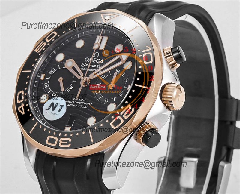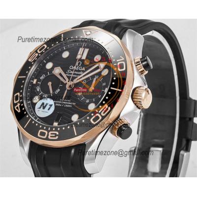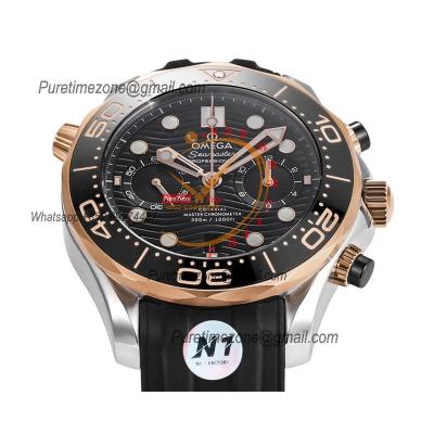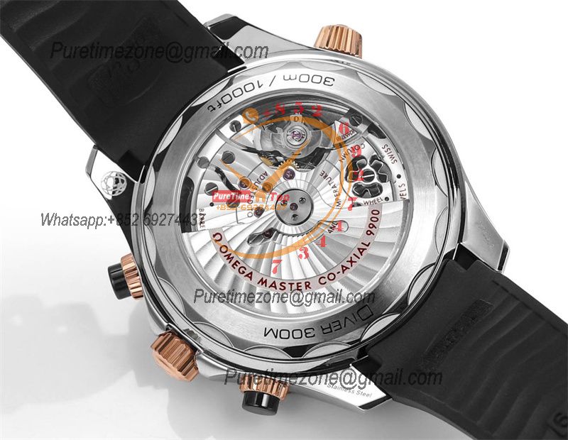 Home OMG Seamaster 300M A9900 Automatic Chronograph Mens Watch Best Edition N1F 44mm Steel RG Black Dial Rubber CHS
