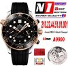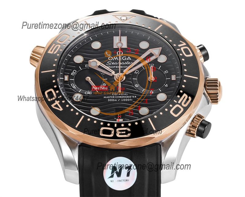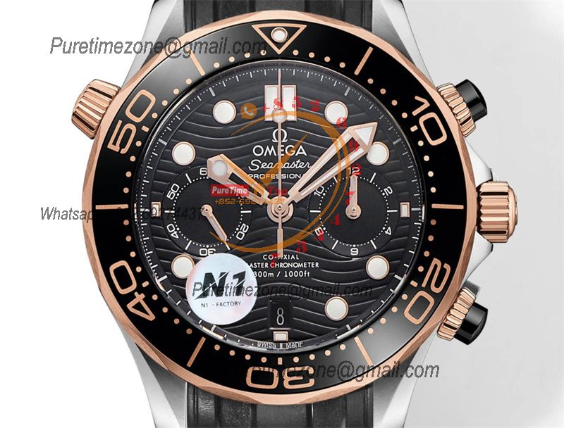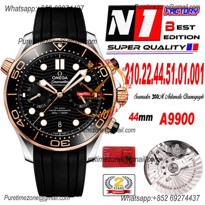 Seamaster 300M A9900 Automatic Chronograph Mens Watch Best Edition N1F 44mm Steel RG Black Dial Rubber CHS