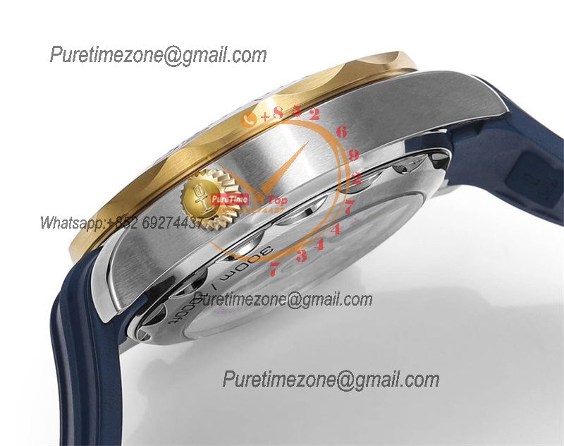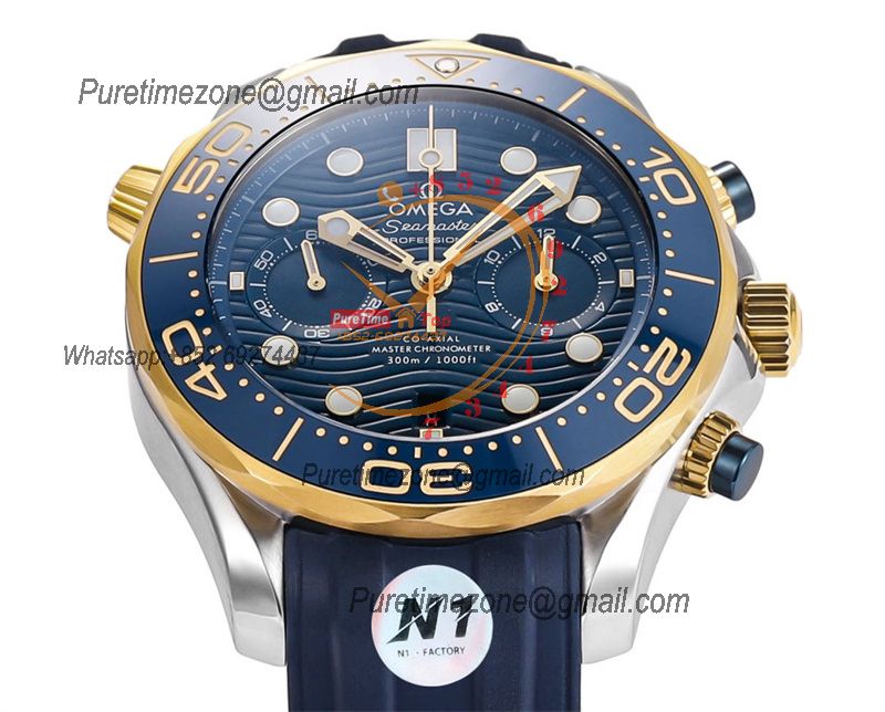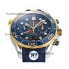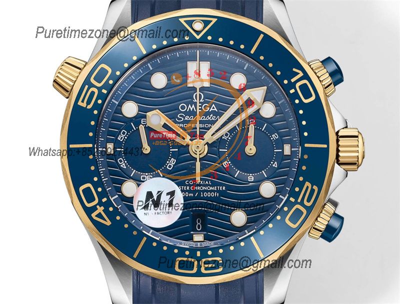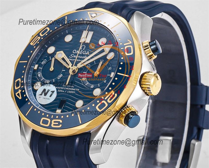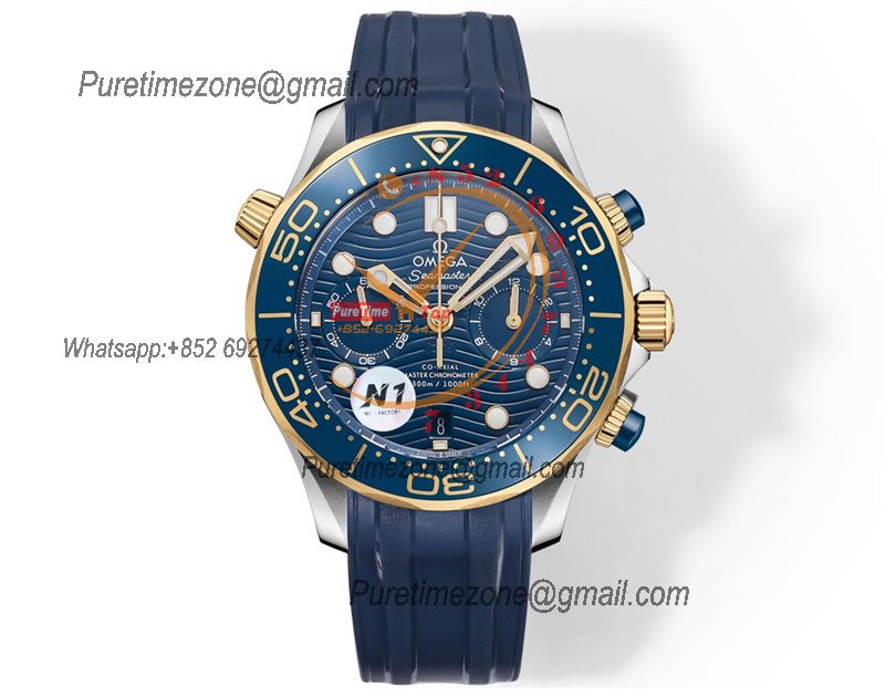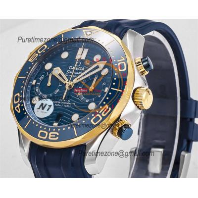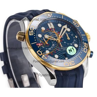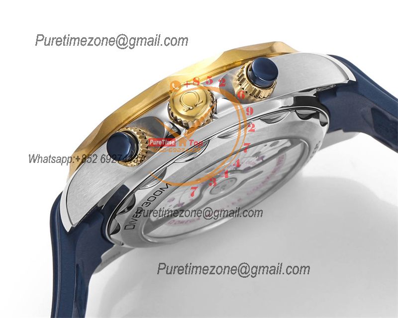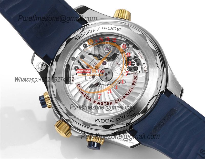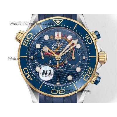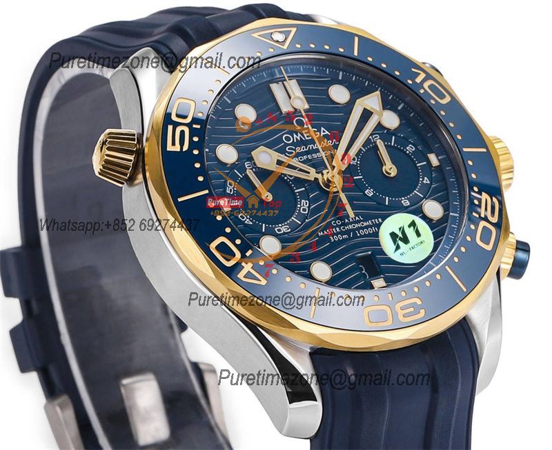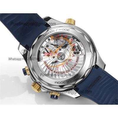 Home OMG Seamaster 300M A9900 Automatic Chronograph Mens Watch Best Edition N1F 44mm YG Blue Dial Rubber CHS