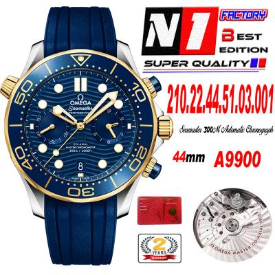 Seamaster 300M A9900 Automatic Chronograph Mens Watch Best Edition N1F 44mm YG Blue Dial Rubber CHS
