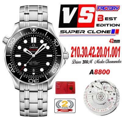 Seamaster Diver 300M A8800 Autoamtic Mens Watches VSF Best Ediiton Black Dial SS Bracelet CHS 210.30.42.20.01.001