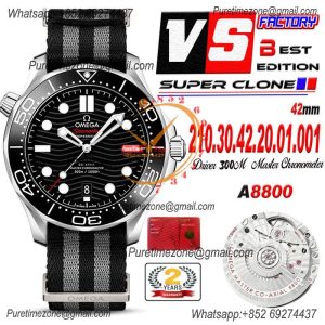 Seamaster Diver 300M A8800 Autoamtic Mens Watches VSF Best Ediiton Black Dial Nylon Strap CHS 210.30.42.20.01.001 $645.00 $430.00