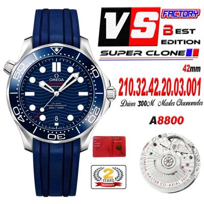 Seamaster Diver 300M A8800 Autoamtic Mens Watches VSF Best Ediiton Blue Dial Rubber CHS 210.32.42.20.03.001