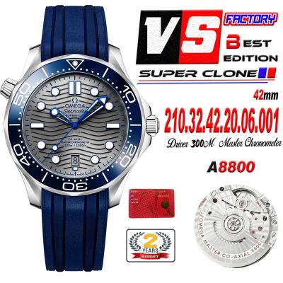 Seamaster Diver 300M A8800 Autoamtic Mens Watches VSF Best Ediiton Gray Dial Rubber CHS 210.32.42.20.06.001