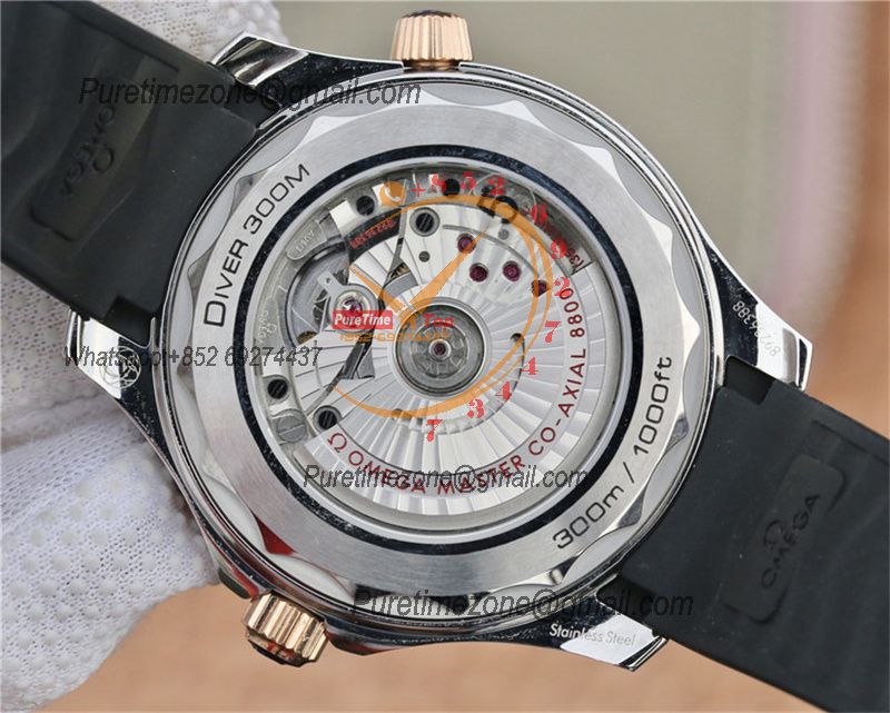 Movement:Asian 2824 automatic movement decorated to Omega 8800 movement, black balance wheel