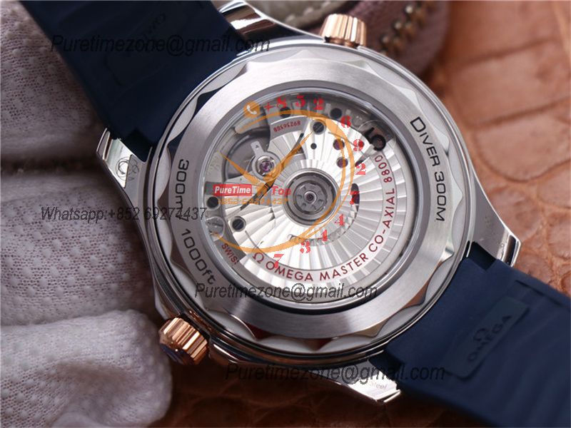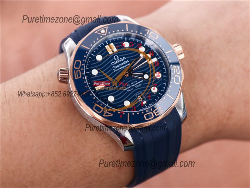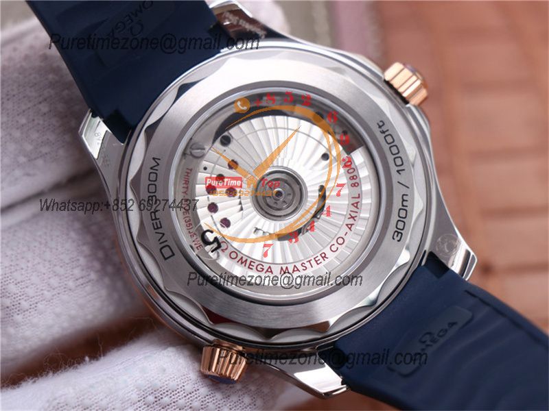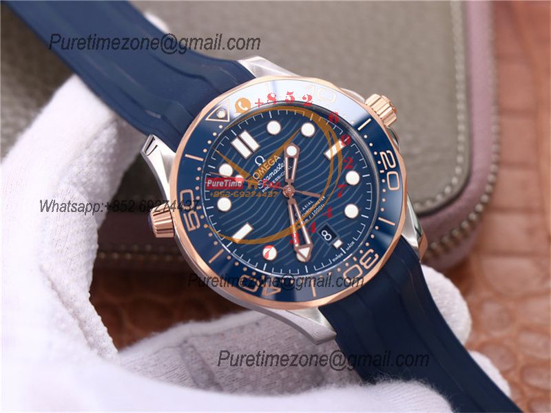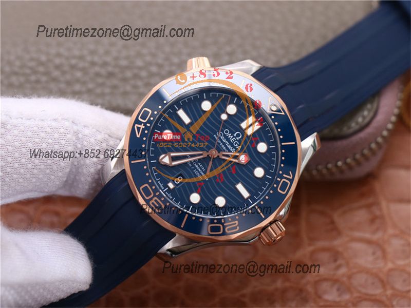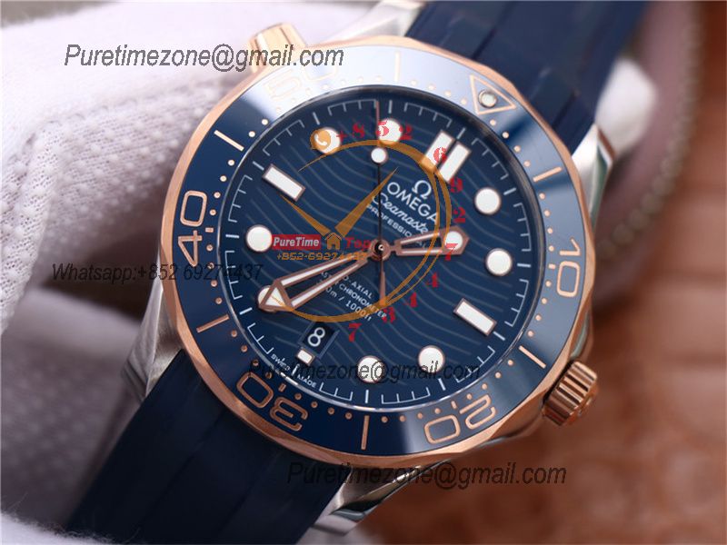 Seamaster Diver 300M A8800 Autoamtic Mens Watches VSF Best Ediiton YG Blue Dial Rubber CHS 210.22.42.20.03.002