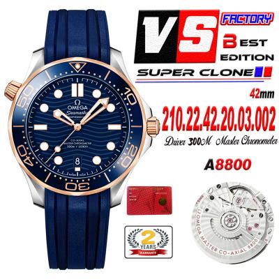 Seamaster Diver 300M A8800 Autoamtic Mens Watches VSF Best Ediiton YG Blue Dial Rubber CHS 210.22.42.20.03.002