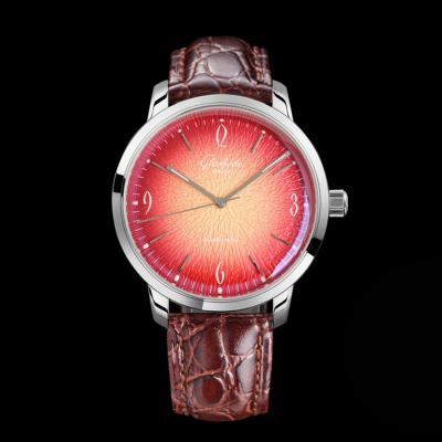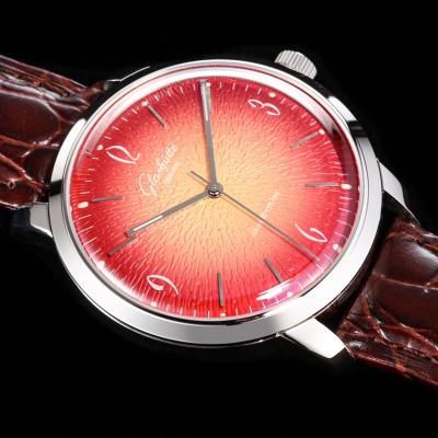 Home Glashutte Original Senator Sixties A3952 Automatic Mens Watch 1-39-52-07-02-01 TWF Best Edition Steel Iconic Red Dial Brown Leather
