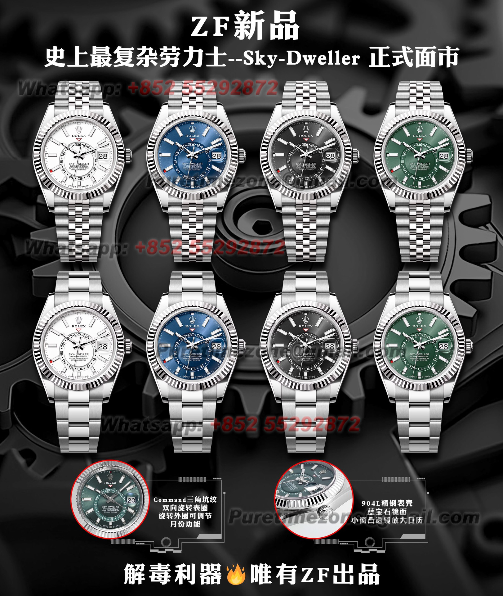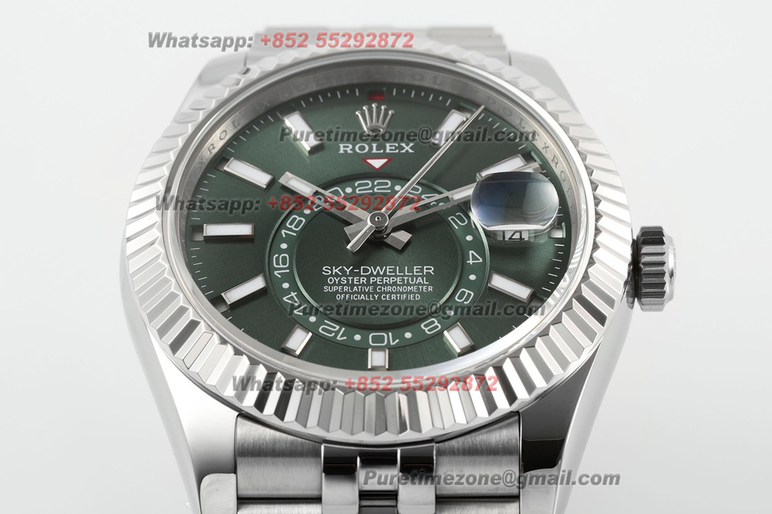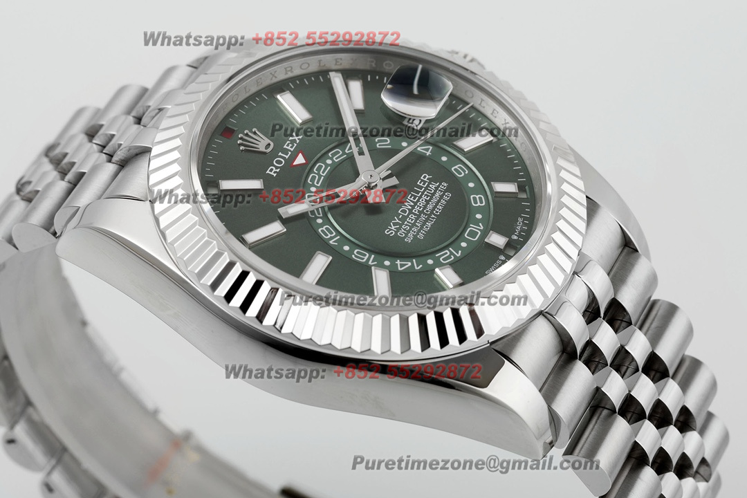 Sky-Dweller 326934 Automatic Mens Watch Super Clone ZF 42 Green Dial Jubilee SS Bracelet A2824