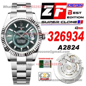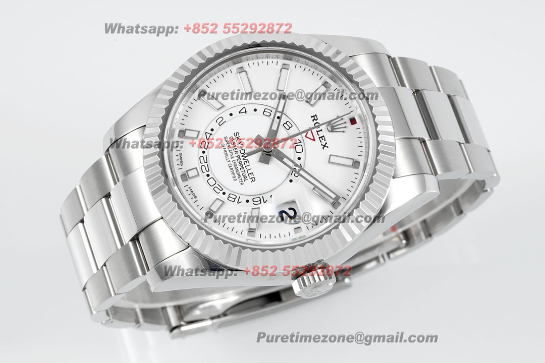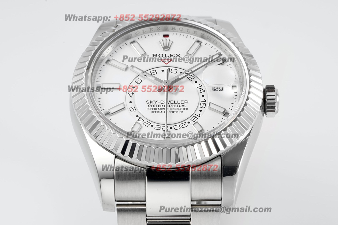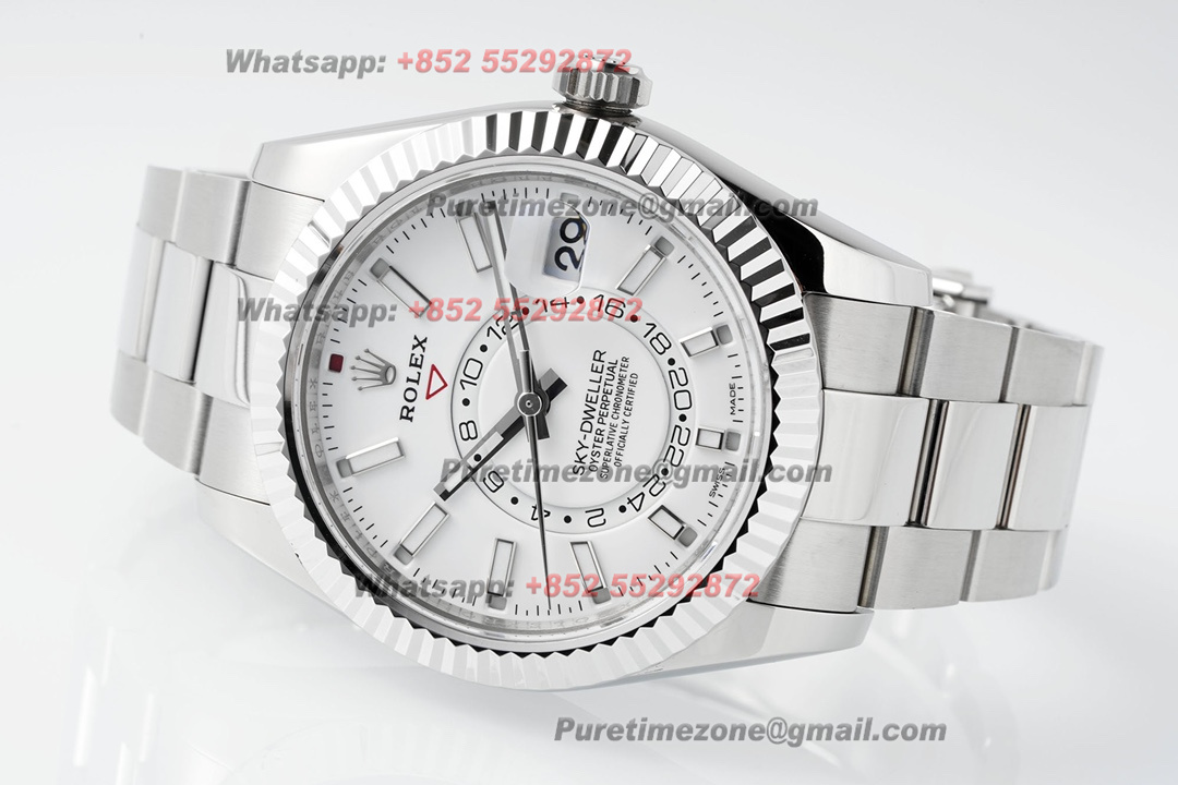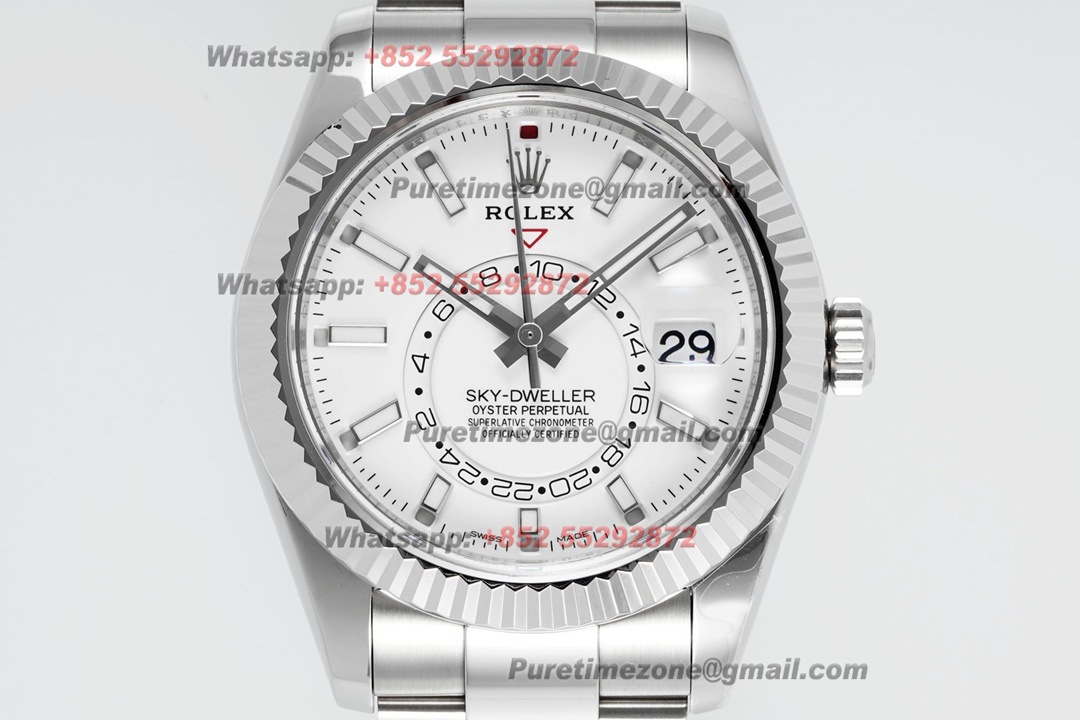 Sky-Dweller 326934 Automatic Mens Watch Super Clone ZF 42 White Dial Oyster SS Bracelet A2824