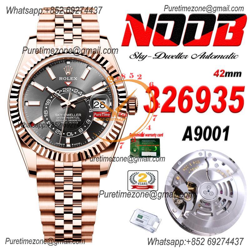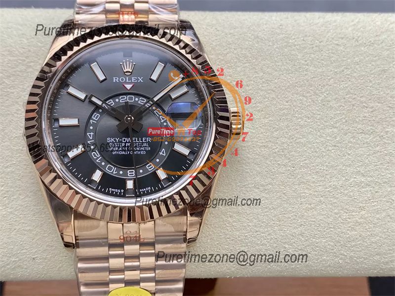 Sky-Dweller 326935 A9001 Automatic Mens Watch NOOB Best Edition 42 RG Gray Dial 904L Jubilee Steel Bracelet CHS