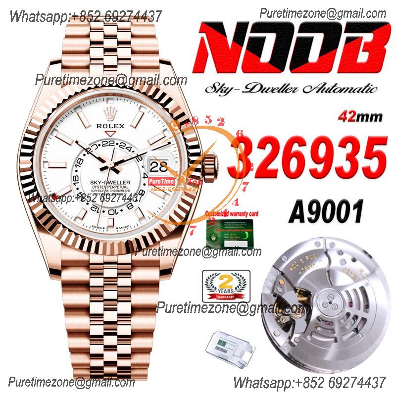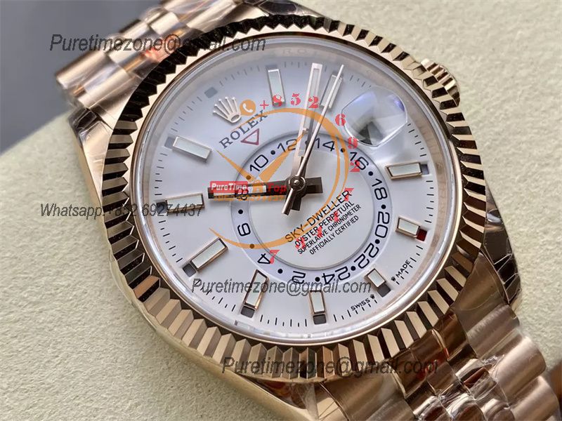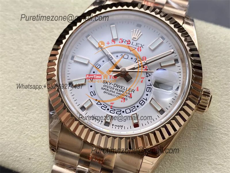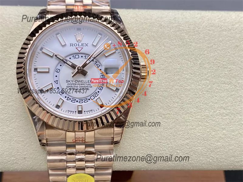 Sky-Dweller 326935 A9001 Automatic Mens Watch NOOB Best Edition 42 RG White Dial 904L Jubilee Steel Bracelet CHS
